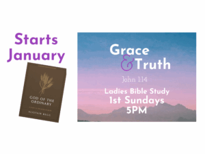 Each month we gather to learn more about God, grow in our knowledge of the Bible, and build relationships with one another. We just wrapped up a study in Ephesians, and in January we begin God of the Ordinary (A study of Ruth).